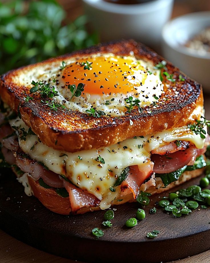 Dieses klassische Gericht kombiniert einfache Zutaten wie Brot, Schinken, Käse und Ei zu einer außergewöhnlich harmonischen Mahlzeit, die sowohl als Frühstück als auch als herzhaftes Mittagessen begeistert.