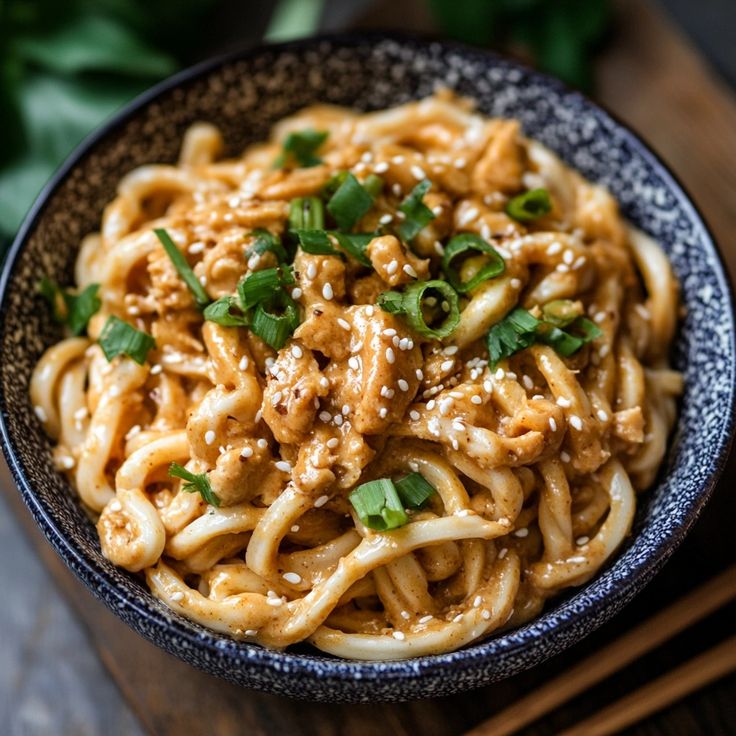 Erdnussbutter Udon Nudeln sind ein köstliches und einfaches Gericht, das asiatische Aromen mit cremiger Erdnussbutter vereint.