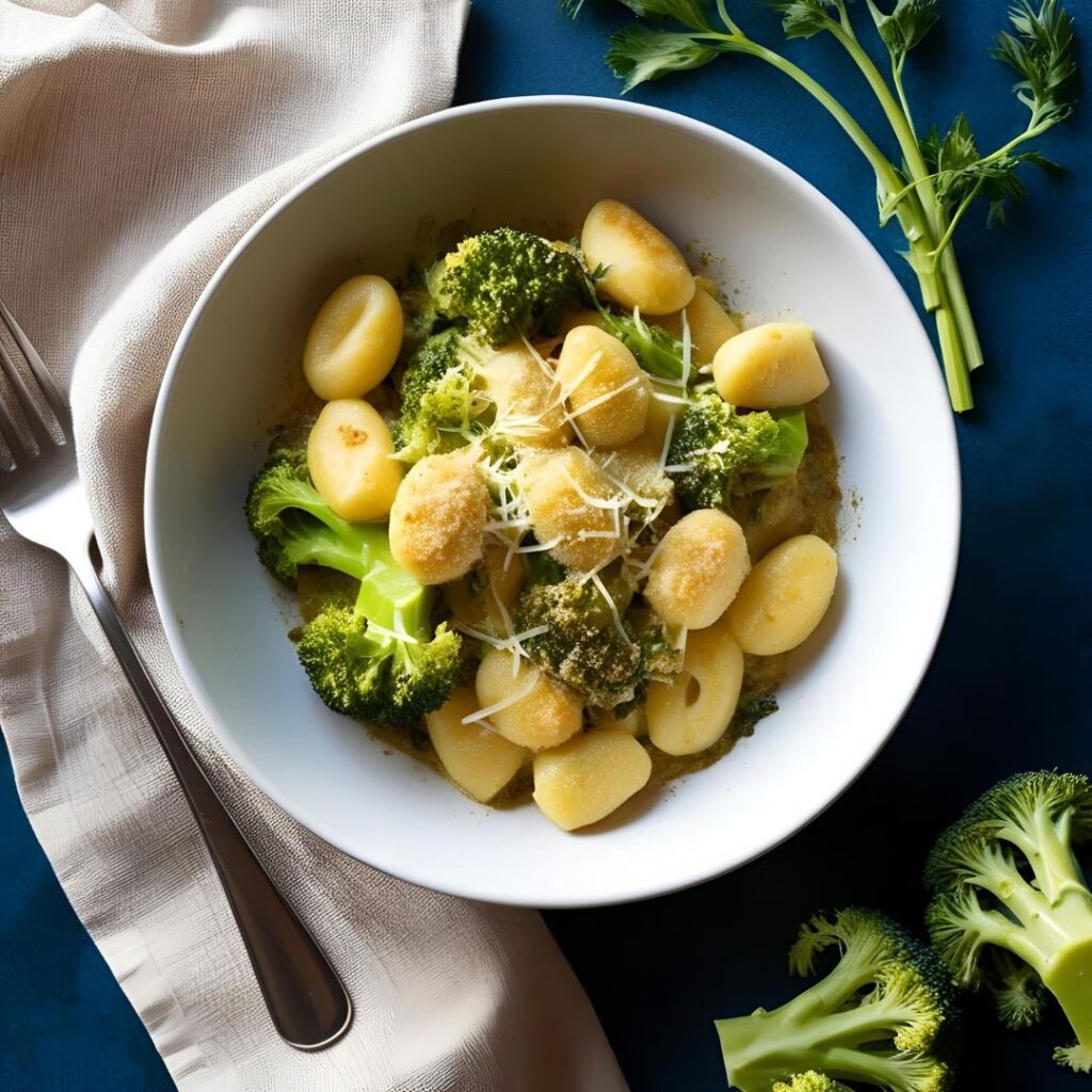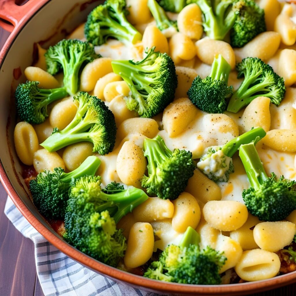 Dieses herzhafte, vegetarische Ofengericht kombiniert die samtigen, kleinen italienischen Kartoffelklößchen mit dem nährstoffreichen Brokkoli zu einer harmonischen Einheit, die sowohl Gaumen als auch Seele erfreut.