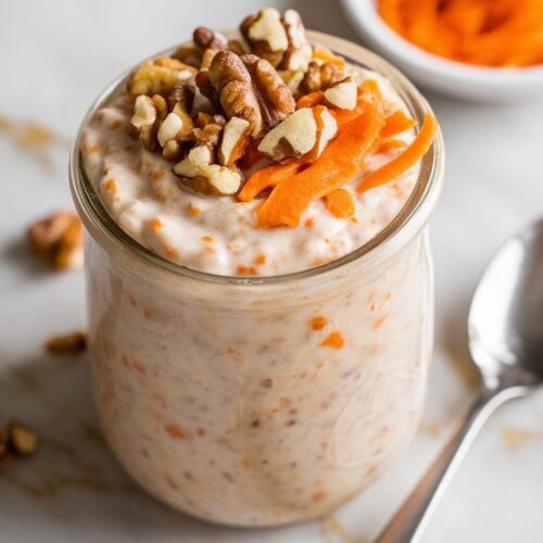 Karottenkuchen Overnight Oats sind eine köstliche und gesunde Frühstücksvariante, die den Geschmack von frisch gebackenem Karottenkuchen mit der Cremigkeit von Haferflocken kombiniert.