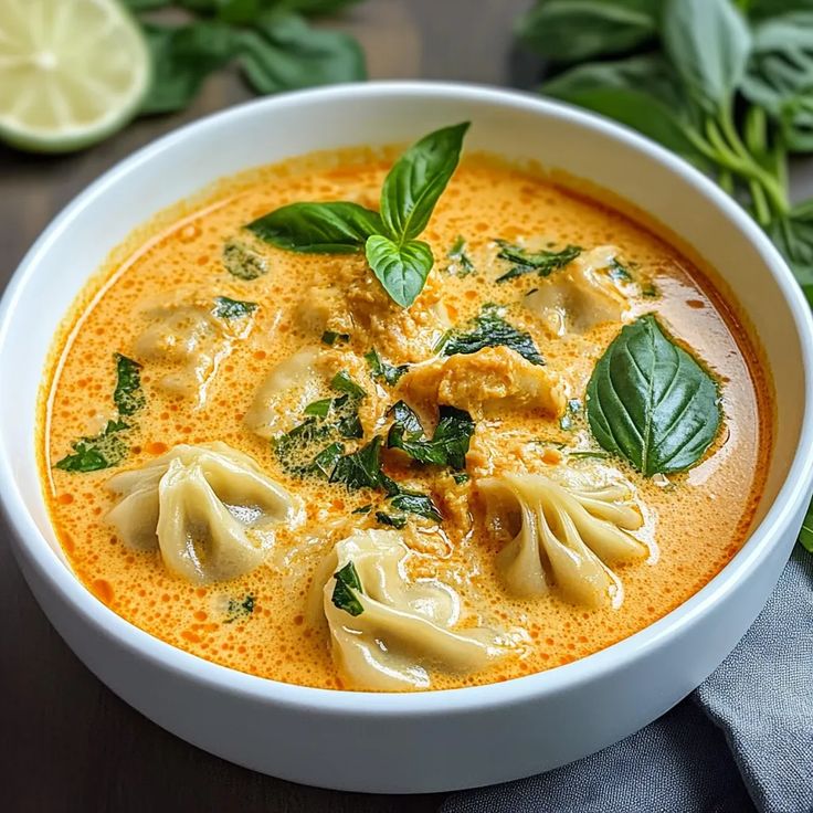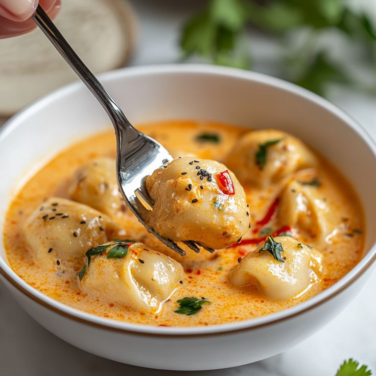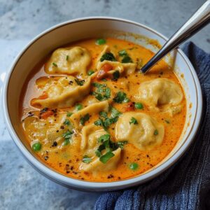 Kokosnuss-Curry-Suppe mit Knödeln ist eine köstliche, cremige Suppe, die exotische Aromen aus der asiatischen Küche vereint. Diese wunderbare Fusion aus würzigen Gewürzen, samtiger Kokosmilch und herzhaften Knödeln bringt Wärme und Geschmack in jeden Haushalt.
