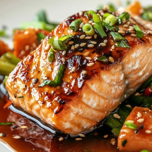 Die süße Glasur harmoniert wunderbar mit dem reichhaltigen Geschmack des Lachses und bringt eine angenehme Tiefe ins Gericht. Serviert mit Reis, Gemüse oder Salat wird daraus eine vollwertige, ausgewogene Mahlzeit.