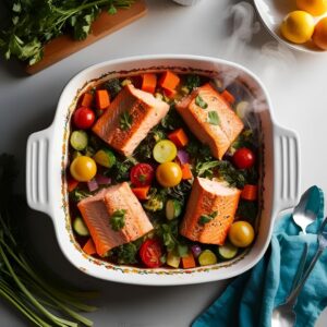 Der Lachsauflauf mit Gemüse ist ein vielseitiges, gesundes und köstliches Gericht, das sich perfekt für verschiedene Anlässe eignet. Ob als Familiengericht am Wochenende, elegantes Dinner für Gäste oder als meal prep für die Woche – dieser Auflauf überzeugt durch seine Nährstoffdichte, seinen vollmundigen Geschmack und seine einfache Zubereitung.