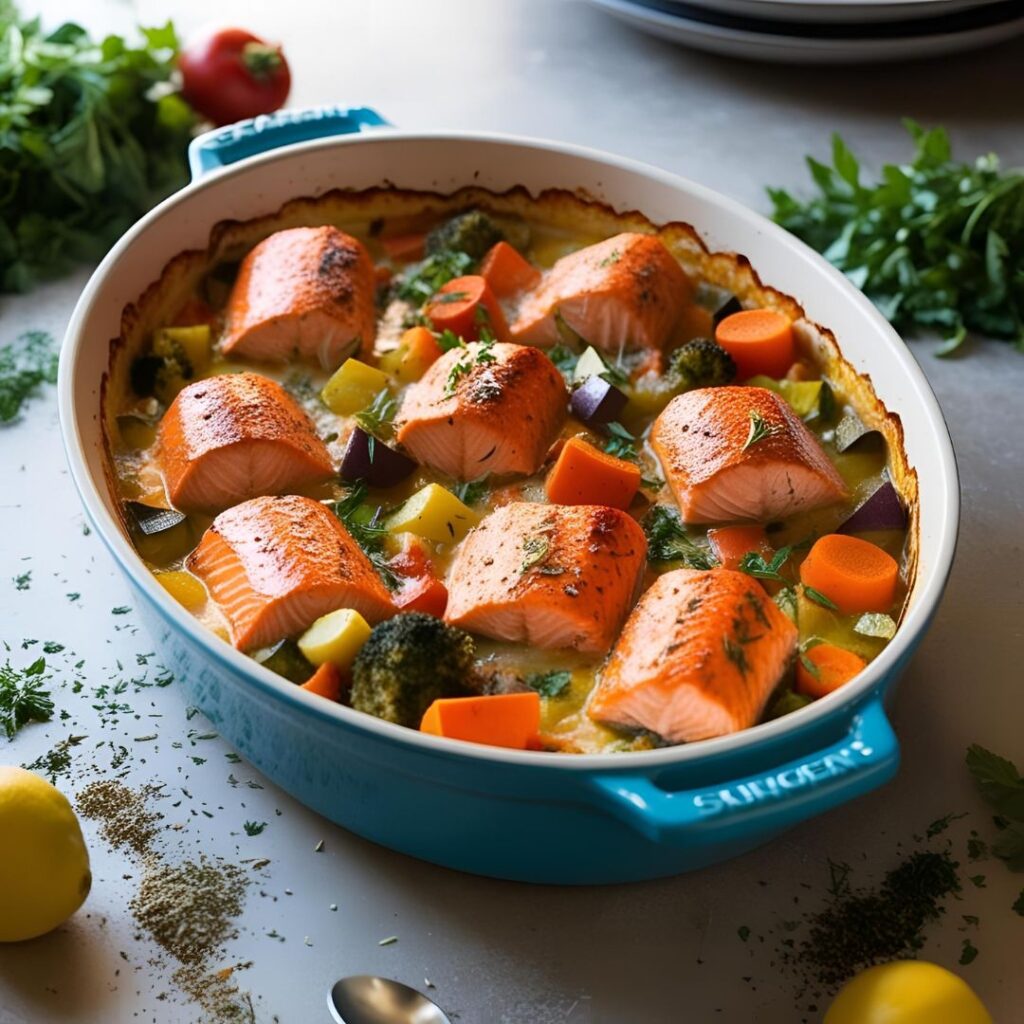 Der Lachsauflauf mit Gemüse ist ein köstliches und zugleich gesundes Gericht, das sich ideal für ein leichtes Mittag- oder Abendessen eignet. Dieses vielseitige und nährstoffreiche Gericht vereint die Omega-3-reichen Vorteile des Lachses mit der Vitaminvielfalt verschiedener Gemüsesorten zu einer harmonischen Mahlzeit, die sowohl Gaumen als auch Körper verwöhnt.