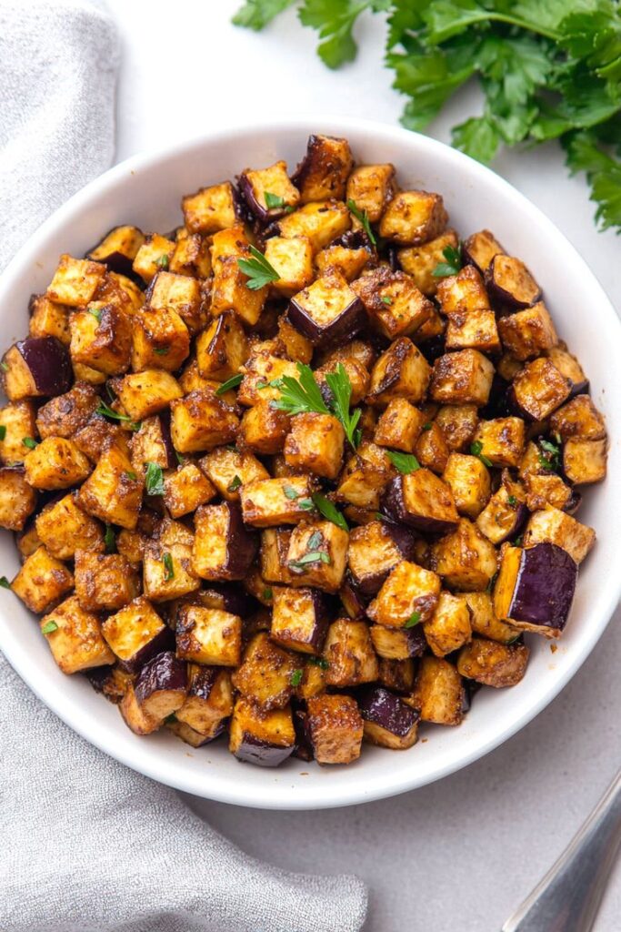 Die Airfryer-Aubergine kann als Beilage zu verschiedenen Hauptgerichten serviert werden: