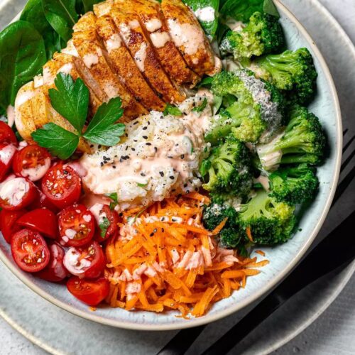 Low Carb Bowl mit Hähnchen – Gesund, bunt & proteinreich