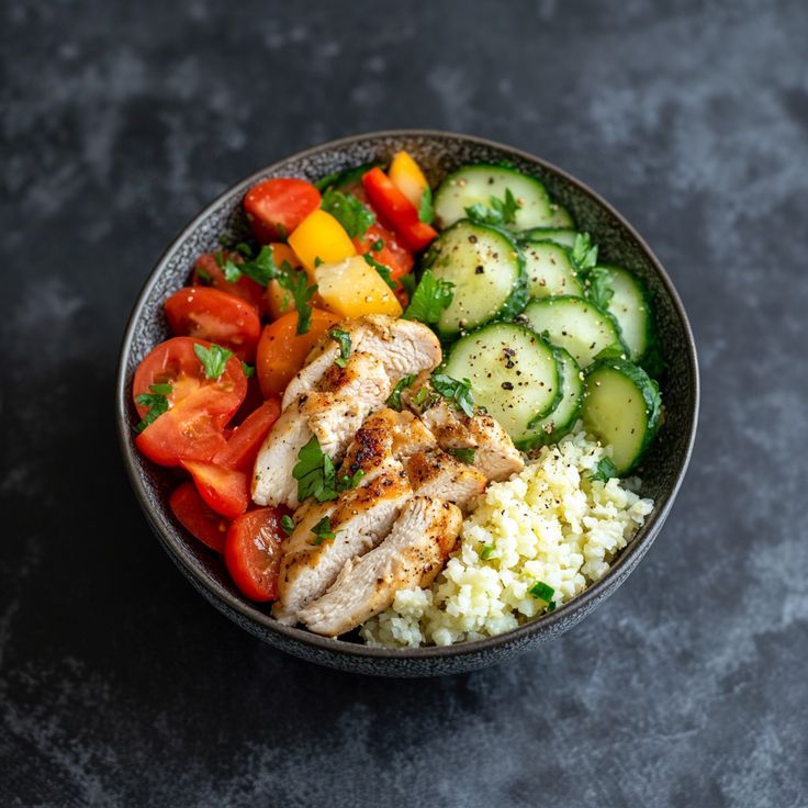 Die Low Carb Bowl mit Hähnchen ist ein leichtes, gesundes und zugleich sättigendes Gericht, das sich perfekt für eine ausgewogene Ernährung eignet.