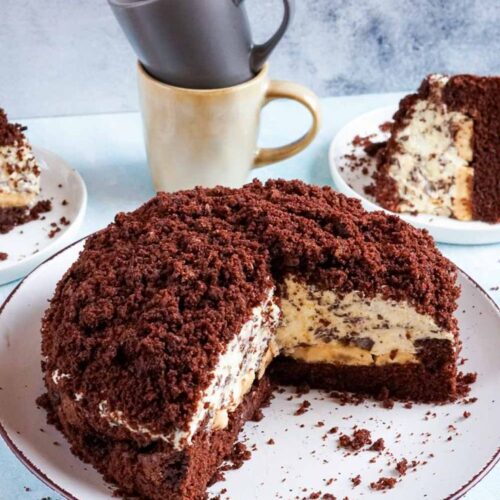 Dieser beliebte deutsche Kuchen verdankt seinen Namen seinem charakteristischen Aussehen, das an kleine Maulwurfshügel erinnert, die von Schokoladenstreuseln und Krümeln bedeckt sind.