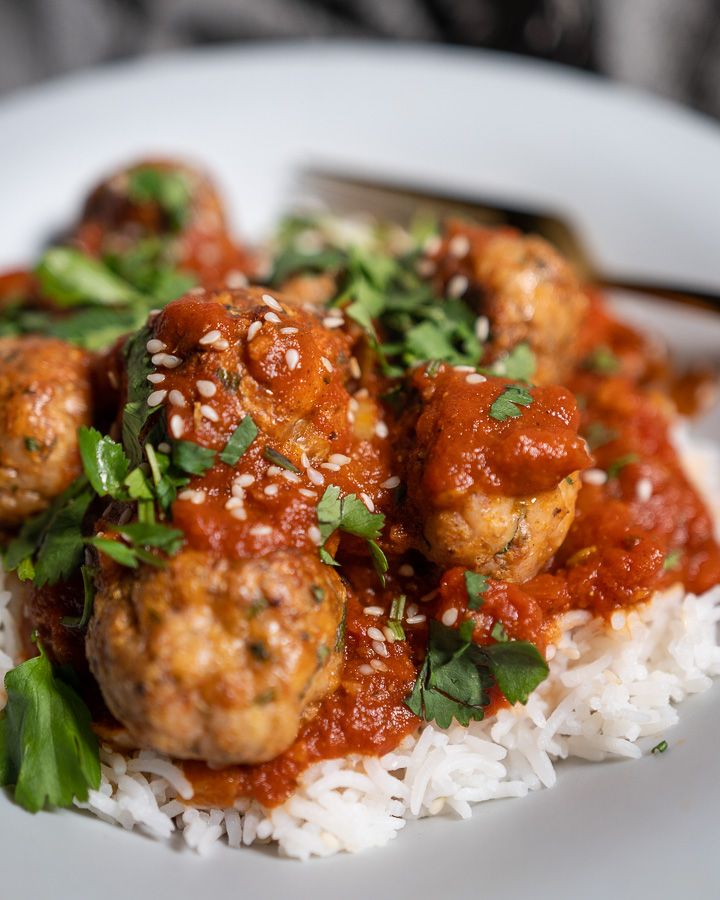 Die Schärfe lässt sich durch die Menge an Cayennepfeffer und Harissa regulieren. Für mildere Fleischbällchen diese Zutaten reduzieren oder ganz weglassen.