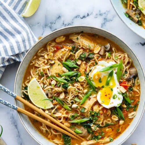 Die One Pot Erdnuss-Ramen Suppe ist ein köstliches, cremiges und einfaches Gericht, das asiatische Aromen mit wohltuender Hausmannskost verbindet.