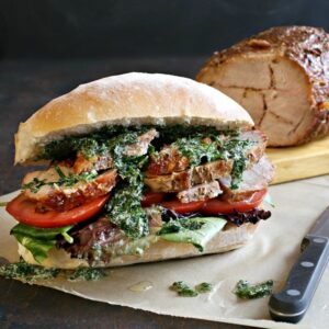 Ergänzt mit der klassischen italienischen Salsa Verde aus Petersilie, Kapern, Sardellen und Olivenöl. Diese Sauce verleiht dem Sandwich eine frische, würzige Note.