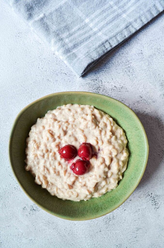 Die ideale Konsistenz von Protein-Milchreis ist cremig, aber nicht zu dick. Er sollte leicht vom Löffel fallen, aber nicht flüssig sein. Die Zugabe von Proteinpulver kann die Textur beeinflussen, daher ist das richtige Verhältnis entscheidend.