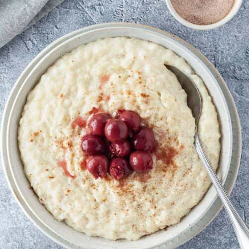 Der süße Reis wird mit Zimt, Vanille oder Früchten wie Beeren oder Bananen serviert, was ihn zu einem köstlichen und gesunden Frühstück oder Snack macht.