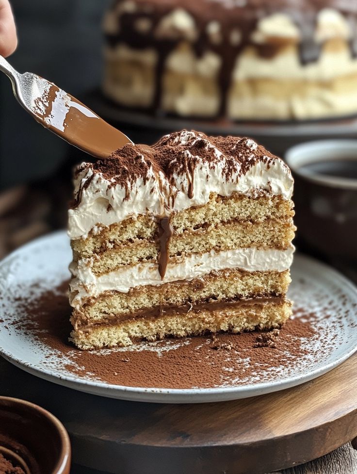 Oft wird der Kuchen mit Sahne, Früchten oder geriebener Schokolade verfeinert. Nach dem Schichten wird der Kuchen im Kühlschrank mehrere Stunden gekühlt, bis er fest ist.
