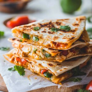 Für eine vegetarische Version können Sie das Hühnchen durch gegrillte Pilze, gebratenen Tofu oder zusätzliches Gemüse wie Zucchini und Auberginen ersetzen. Schwarze Bohnen und Mais sind ebenfalls ausgezeichnete pflanzliche Proteinquellen für vegetarische Quesadillas.