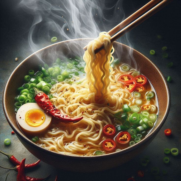 Ramen mit Huhn und Ei ist ein beliebtes japanisches Nudelgericht, das Herz und Sinne gleichermaßen wärmt. Diese dampfende Schüssel voller Aromen verkörpert die Essenz der japanischen Küche und hat sich zu einem weltweiten Phänomen entwickelt, das Millionen von Menschen begeistert.