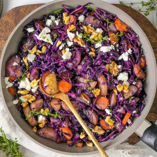Die Rotkohl-Pfanne mit Kartoffeln ist ein herzhaftes, vegetarisches Gericht, das sich perfekt für die kühle Jahreszeit eignet.