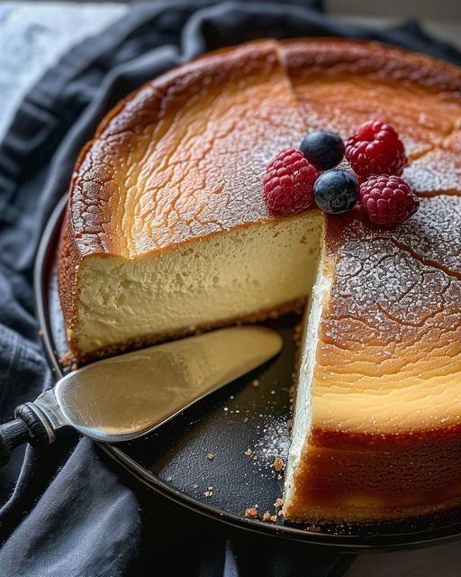 Im Gegensatz zu vielen anderen Käsekuchen kommt dieses Rezept mit nur wenigen, aber hochwertigen Zutaten aus. Es gibt keinen Boden, keine komplizierten Schichten – nur pure, konzentrierte Käsekuchen-Perfektion.