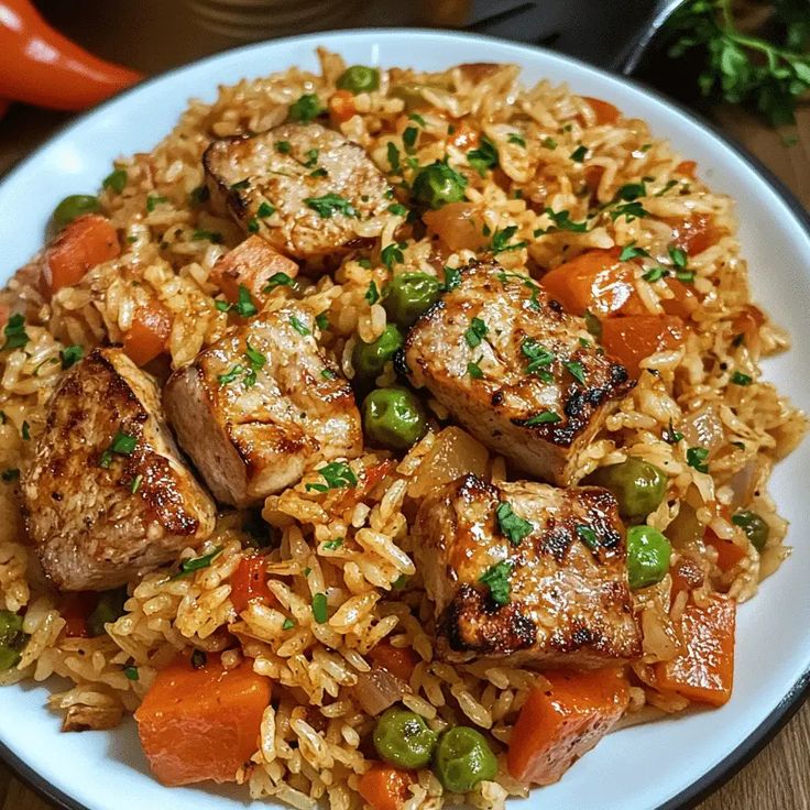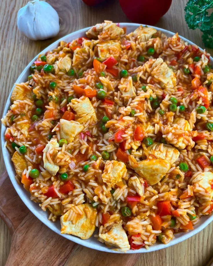 - Schritt 8: FertigstellungIn den letzten 15 Minuten den Deckel entfernen, damit sich eine goldene Kruste bilden kann. Optional die grünen Erbsen in den letzten 10 Minuten hinzufügen. Das Gericht ist fertig, wenn der Reis gar ist und die Flüssigkeit absorbiert wurde.