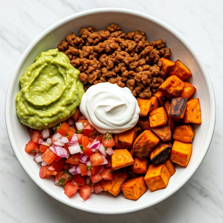 Diese moderne Interpretation der traditionellen mexikanischen Küche kombiniert die natürliche Süße gerösteter Süßkartoffeln mit würzigen Bohnen, frischem Gemüse und cremigen Avocados zu einem wahren Fest für die Sinne.