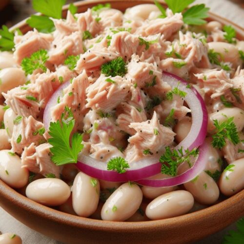 Der Thunfisch-Bohnen-Salat ist ein klassisches mediterranes Gericht, das einfach zuzubereiten ist und voller Geschmack steckt. Diese zeitlose Kombination aus proteinreichem Thunfisch und sättigenden weißen Bohnen verkörpert die Essenz der mediterranen Küche: frisch, gesund und unglaublich schmackhaft.