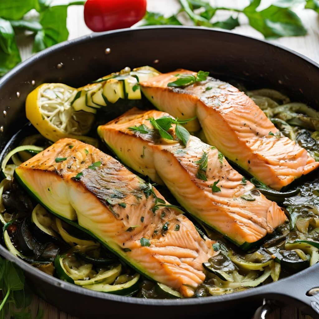 Die Zucchinipfanne mit Lachs ist ein leichtes, gesundes und zugleich aromatisches Gericht, das sich ideal für ein schnelles Mittag- oder Abendessen eignet.